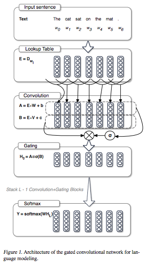ゲート構造を用いたConvolutional Networkで言語モデルを構築するためのネットワークを構築する。